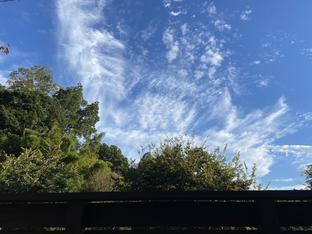 朝、バス停まで歩く途中、近くの公園の樹々がきれいでした。
