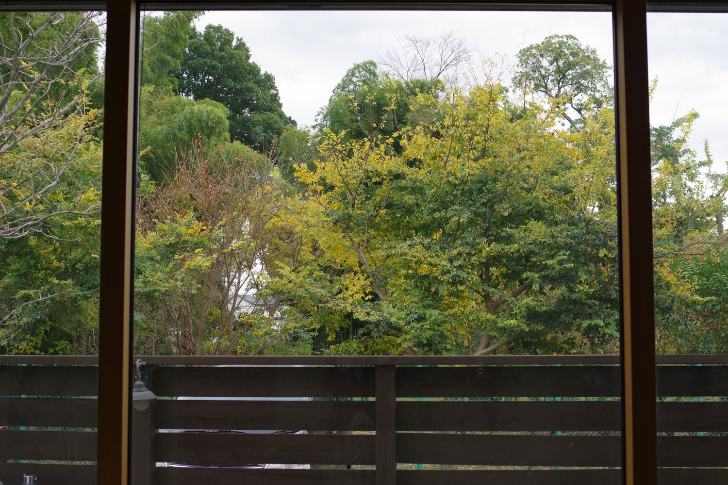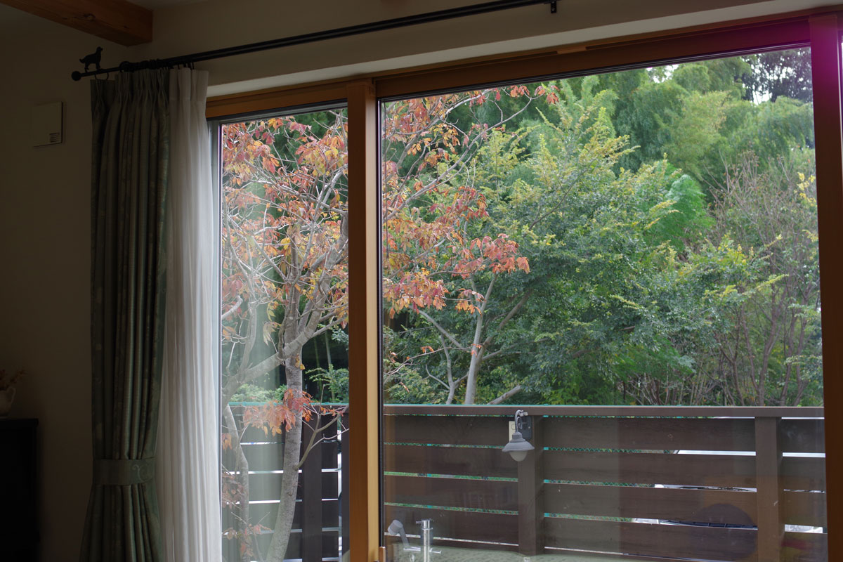 我が家のテラスのアオダモがいい感じに色づき、リビングから、居ながらにして紅葉を楽しんでいます。
