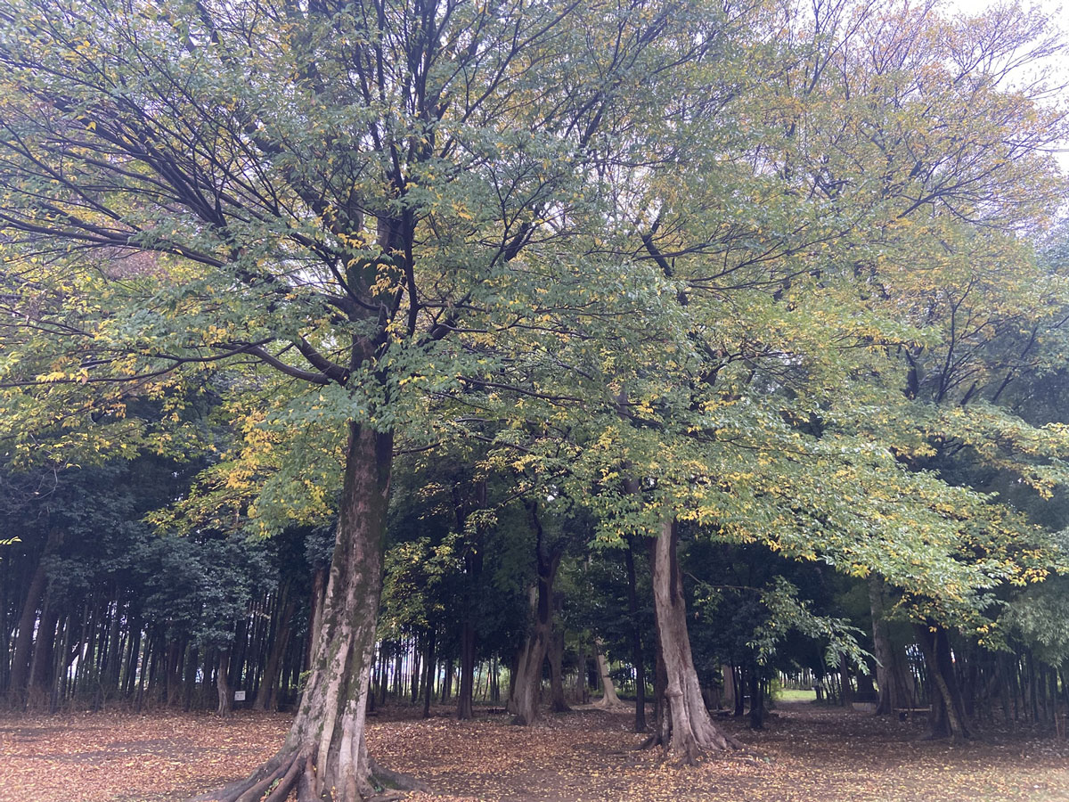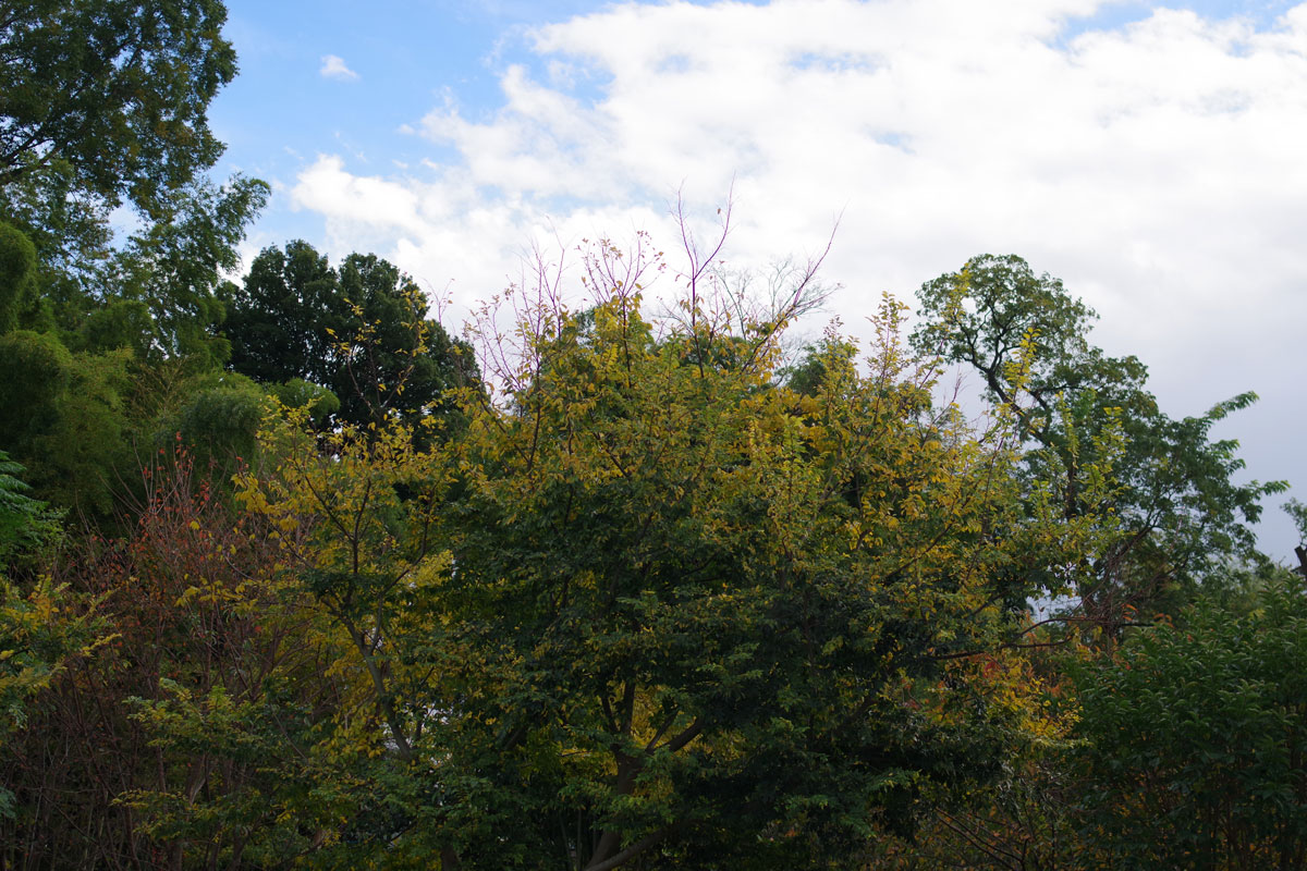 進んでいます、我が家の前の公園の樹々、日に日に色づいています。