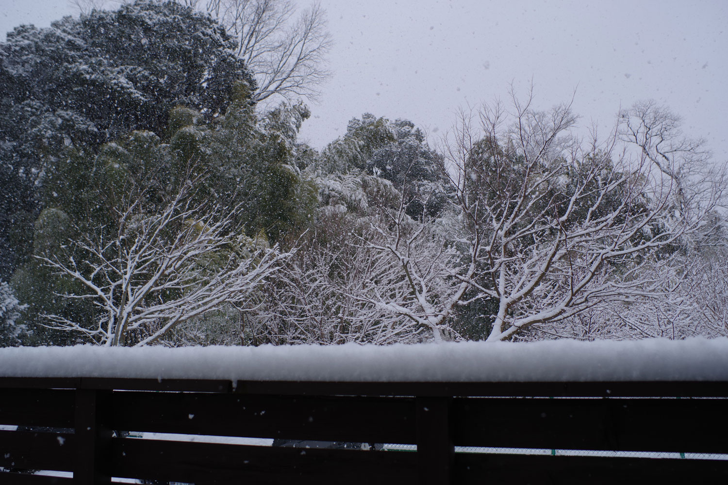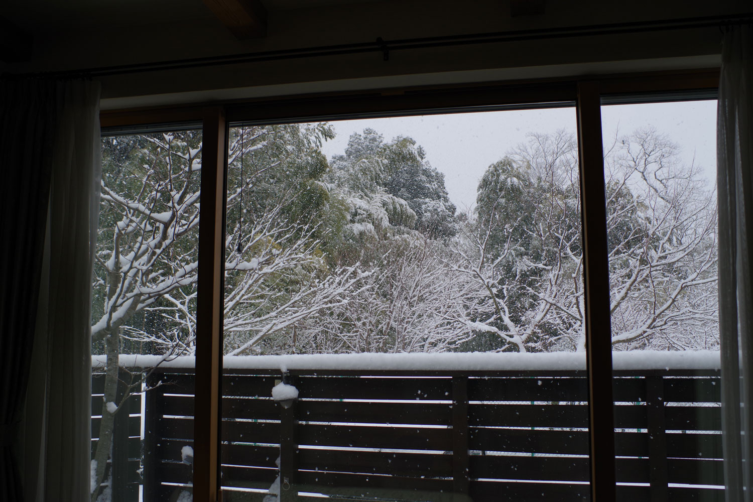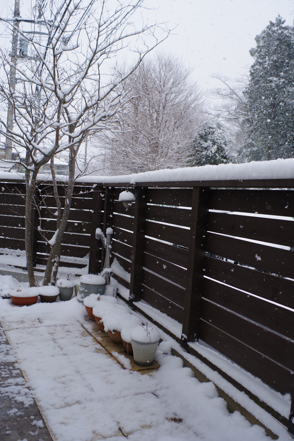 朝、起きたら、案の定積もっていました。静かな朝、雪景色はいつも美しいです。