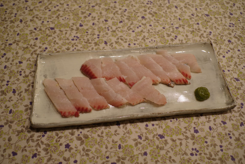 にいにが釣って来た「太刀魚」、お刺身でいただきました。新鮮だからぷりぷりしていて、美味しかったです。